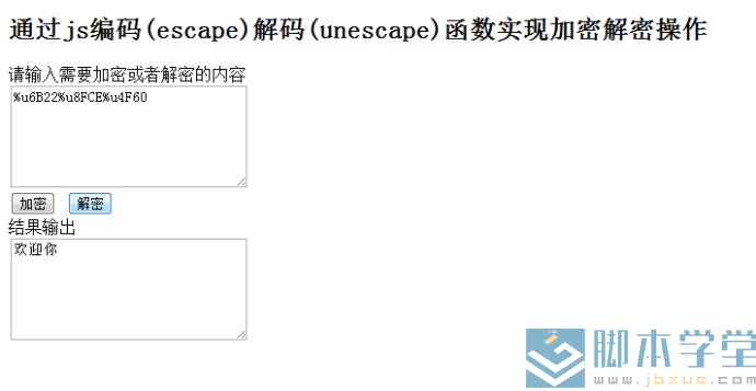 <h2>通过js编码(escape)解码(un escape)函数实现加密解密操作</h2>
