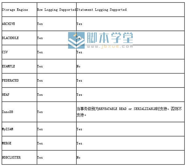 一旦确定执行的语句可用的日志记录格式,则与当前binglog_format的设置做比较。下表可用于确定信息如何写入二进制日志,或者,是否抛出异常。