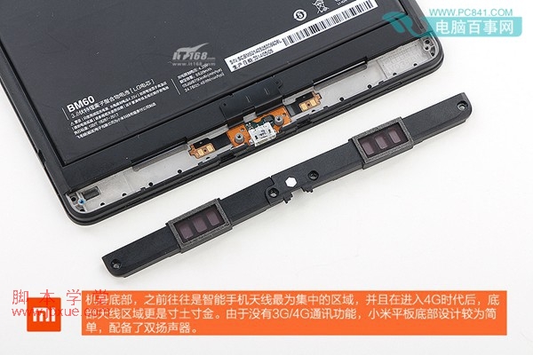 小米平板电脑内部中框采用铝镁合金框架支撑,这也是目前主流智能手机使用的固定框架,其实平板电脑虽然体积大,但所用的芯片较少。