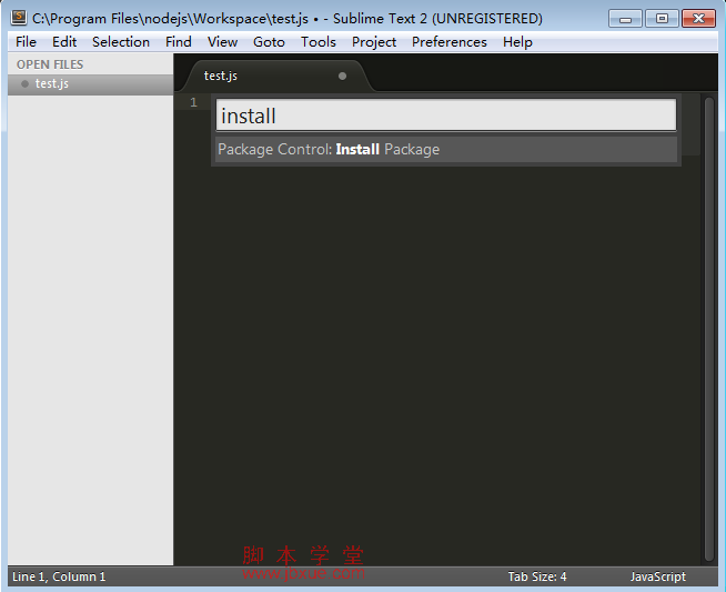 7.安装完成后重新启动Sublime,按下快捷键Ctrl + Shift + P; 输入install,选择Install Package并回车