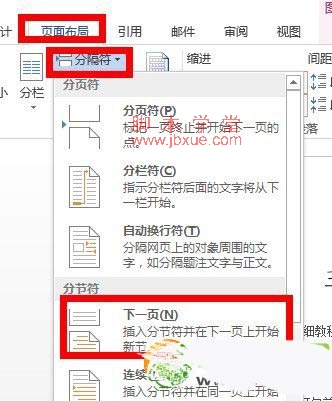 第二步、选择“布局”-“分隔符”-“下一页”,也就是要把前面空出一页。