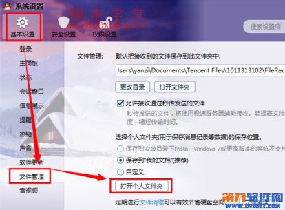 依次选择“基本设置”-“文件管理”-“打开个人文件夹”,至此,打开个人文件夹。
